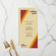 Menu de recepção de casamento vermelho, laranja e castanho bronzeado com canto com faixa. Personalize adicionando sua própria lista de refeições, os nomes da noiva e do noivo e a data do aniversário de casamento.