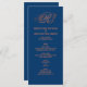 Este menu elegante tem um monograma entrelaçado na pia batismal do roteiro nas máscaras do cobre e do texto do cobre em um fundo dos azuis marinhos.