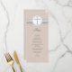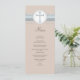 Um azul de aço bonito e um design tan do pérola de falso das características do esquema de cores e o transversal neste cartão do menu para sua recepção religiosa da celebração.