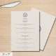 Eleve a experiência de jantar do seu restaurante com o Menu Restaurante de Logotipo Culinário Moderno. Este design elegante apresenta um logotipo moderno pré-fabricado com uma placa, faca e garfo, seguido do nome do seu restaurante em uma fonte azul sans-serif contemporânea. As seções de menu para os aperitivos e os cursos principais são apresentadas em caracteres azuis sobre um fundo marfim elegante, garantindo uma apresentação limpa e visualmente atraente. A parte de trás do menu mostra seu logotipo, nome do restaurante e slogan no centro, criando uma aparência coesa e profissional. Ideal para restaurantes, bistros e profissionais culinários em busca de um design moderno e sofisticado que deixe uma impressão duradoura nos jantares.