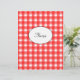 Um modelo de folheto personalizado para menus com um padrão de xadrez vermelho e branco com tiras espessas e finas sobrepostas. Clique em Personalizar para adicionar mais texto, alterar fontes, dimensionamento, cores de fundo e muito mais, até salvar seu design para mais tarde.