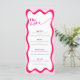 Este menu de Chá de panela com uma moderna borda ondulada rosa-quente é perfeito para uma Festa de solteira colorida e divertida. O convite de correspondência, as placas de compartimento e os sinais também estão disponíveis nesta coleção