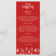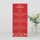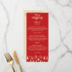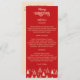 Cardápio festivo do Feliz Natal com fundo vermelho com árvores de Natal estilizadas beges e flocos de neve estilo retro do século médio Cartão de modelo do janto de Natal