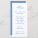 O cardápio de casamentos branco e azul de girassol empoeirado. Personalize a posição do texto, o estilo da fonte, o tamanho ou a cor. O fundo é azul empoeirado no fundo, branco na frente.