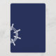 Cartões de menu de casamento azuis, marinho náutico, redondos e personalizados, com roda branca e texto personalizável