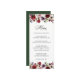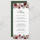 Uma escolha romântica em papelaria de casamento, esta design de cardápio apresenta cores românticas ricas de vermelho burgundy, roxo ameixa, rosa pincelado e verde etéreo em uma bela fronteira floral ao longo das bordas superior e inferior da design. A parte de trás do menu está coberta pelo fazer verde de caçador correspondente, uma combinação de cores encantadora única. Estas cores são frequentemente utilizadas em casamentos desde o Verão-médio até ao outono e durante os meses de inverno. Personalize a modelo de texto com as seleções de menu. Outros produtos de casamento correspondentes estão disponíveis para coordenar com este item.