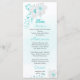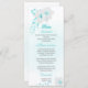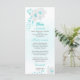Turquesa romântica e cardápio botânico de flores brancas. Os detalhes de brilho são simulados.