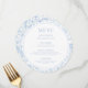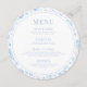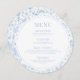 Entra na elegância do eterno com o nosso clássico cartão de cardápio de primavera da boêmia/verão redondo. Apresentando um padrão de chinoiserie azul inspirado na porcelana floral, este sofisticado design adiciona um toque refinado à sua celebração. Perfeito para casamentos rústicos, boêmicos, ou ao ar livre, isso melhora lindamente sua experiência de jantar de casamento.