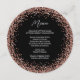 Uma borda circular de rosa dourada falsa contra um fundo preto sólido personalizável. Um design de texto de menu minimalista para o seu evento especial ou casamento. As impressões de brilho falsas como uma foto nos menus redondos.