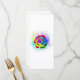 Rosa grande e florescente com pétalas arco-íris sobre fundo branco, pintadas com pedaços de tinta colorida e brilhante. 3d