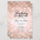 Design de "Programa de Festa de aniversário" elegante com flocos de neve e luzes em Rosa Dourado com texto personalizado.