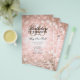 Design de "Programa de Festa de aniversário" elegante com flocos de neve e luzes em Rosa Dourado com texto personalizado.