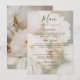 Apresente a refeição do seu casamento com elegância usando este lindo cartão de menu, apresentando uma foto de flor de rosa branca sonhadora pela Destei desbotada sob uma delicada sobreposição branca. A frente exibe um título Menu em escrita graciosa e espaço para listar suas opções de refeição, enquanto a parte traseira mostra a vibrante foto da rosa ao lado de duas áreas de texto personalizáveis para suas iniciais e data do casamento. Perfeito para casamentos no jardim e celebrações florais refinadas, este cartão de menu adiciona um toque sofisticado ao conjunto de papelaria do seu casamento.