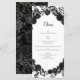 Nossos menus de casamento floral rosa gótico preto e branco são feitos para combinar com a Coleção de Casamentos de Rosa Negro Gótico. Contraste preto escuro e branco brilhante com uma abundância de motivos florais escuros. A fonte de script emparelhada com a fonte serif, permite uma aparência artística que combina bem com o estilo gótico.