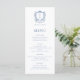 Este Rosa francês Elegante Blue Monograma Crest Cartão de Casamento é perfeito para o seu casamento formal ao estilo barroco, com um escudo floral vintage e tipografia clássica do eterno.