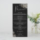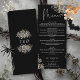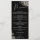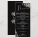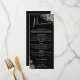 Este elegante menu de casamento floral preto e branco gótico pode ser personalizado com suas informações em tipografia chic com suas iniciais monograma no verso. Projetado por Thisisnotme©
