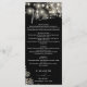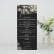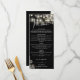 Este menu de casamento gótico com flores pretas e brancas e luzes de corda pode ser personalizado com suas informações em tipografia sofisticada com suas iniciais monogramáticas no verso. Projetado por Thisisnotme©