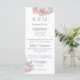 Este menu elegante e romântico apresenta um design floral. Rosas rosa e folhas florais boho acentuam os cantos superior direito e inferior esquerdo. Você pode substituir os itens do menu com as opções de comida de sua escolha. É adequado para um evento de café da manhã, brunch, almoço ou jantar, ou para um casamento ou banquete.