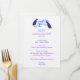 Menu roxo, azul do casamento do pavão