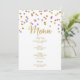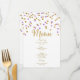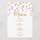 Menu do comensal de casamento no teste padrão roxo dos confetes do brilho do ouro glamoroso. (note por favor o brilho é impressão somente)