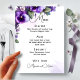 "Deixe seus convidados encantados com nosso menu de casamento lindamente projetado, apresentando elegantes acentos florais roxos e prateados sobre um requintado fundo de marfim. Uma combinação perfeita de sofisticação e estilo para o seu dia especial."