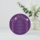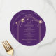 Mística Roxo Dourada Sol Lua Espacial Cartões Cartões de Menu de Casamento Ouro, Lua e Estrelas se enquadram em um fundo roxo com detalhes de menu no centro em um moderno roteiro de caligrafia dourada. Personalize editando o texto nas caixas de texto fornecidas. Projetado para você pelo Evco Studio © em www.zazzle.com/store/evcostudio