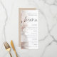 Menu de Casamento de Sobreposição de Pampas Rustic Boho Pampas. As gramíneas coloridas de outono num vaso de estilo boêmico decoram o lado esquerdo com uma camada inclinada graduada e o texto parcialmente sobreposto no topo. Com um script elegante para Menu e fácil personalizar o resto do texto de acordo com as suas necessidades.