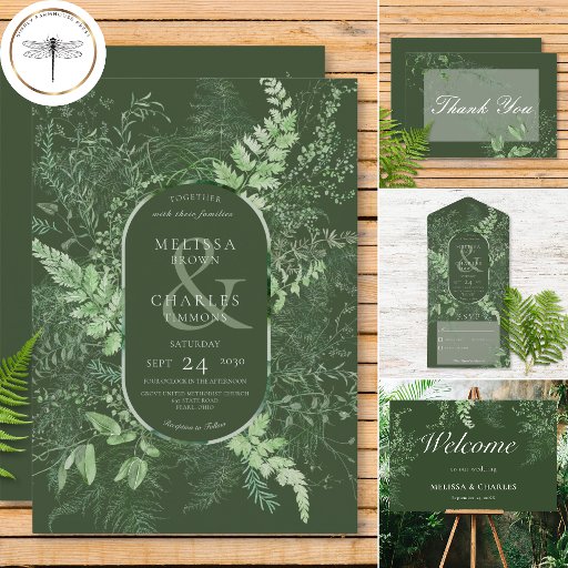 Menu Rustic Fern Green Foliage Emerald Wedding