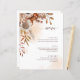 Delicar as florais aquáticas em tons quentes e úmidos cria uma sensação de elegância rústica, estabelecendo o palco para uma experiência de jantar verdadeiramente inesquecível. Este modelo personalizável oferece um belo pano de fundo para mostrar o seu cuidadosamente curado menu de casamento, que atrai convidados com seu charme subestimado e design sofisticado.