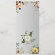 Cardápio de casamento elegante, moderno, botânico, púrpura de madeira rústica com flores de aquarela, girassóis e verde.