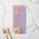 Defina um tom romântico para sua recepção de casamento com este menu de casamento floral rústico com nomes personalizados de hóspedes. Projetado com um fundo roxo suave, um cabeçalho de script elegante e uma faixa de nome de pêssego vertical exclusiva, este menu adiciona um toque moderno, porém quente, à sua configuração de mesa. Os florais escidos, cor de pêssego, marfim e em tom de lavanda no fundo evocam o final do verão ou o início do outono — perfeito para chic rústico, jardim de vassoura ou casamentos rurais. O texto totalmente editável permite personalizar com facilidade cada curso e nome de convidado.