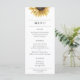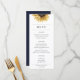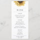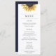 Girassol de cor de água russa, cartão de cardápio de casamento moderno. Modelo oferece espaço para nomes, data e três títulos de menu com descrições. A cor de backup mostrada na coordenação do azul marinho escuro pode ser personalizada.