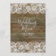 Lace floral elegante branco cinzento branco Elegante oferece fundo de madeira rústica, modelo de menu de casamento personalizável.