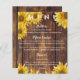 Cartão de Menu Rustic Sunflower Yellow Wedch - Design de Madeira Personalizada para Casamentos outono. Elevem sua recepção de casamento com nosso Cartão de Menu de Casamento Amarelo Rústico de Girassol. Apresentando um charmoso fundo de madeira adornado com girassóis vibrantes, este cartão de menu adiciona um toque de elegância rústica à sua celebração. Personalize o texto para corresponder às suas ofertas de menu e crie uma aparência coesa com outros itens da nossa coleção. Ideal para casamentos outono, recepções de celeiro e eventos temáticos de girassol.