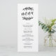 As características deste design rústicas do menu do comensal de casamento entregam louros tirados do país com uma pia batismal da caligrafia do divertimento.