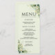 A sophisticated sage green lily of the valley wedding menu featuring elegant corner watercolor calla lilies and simple botanical greenery.