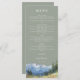 Estes elegantes menus de casamento de flor silvestre verde-aquática da montanha podem ser personalizados com sua informação na tipografia moderna. Projetado por Thisnotme©