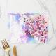 Articulação artificial, ramo de cor-de-rosa, cereja floresce sobre fundo picturesco, texturizado, pintado com tinta branca, rosa e azul. Pink Sakura