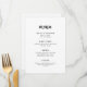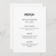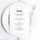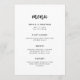 Este elegante e minimalista cartão de cardápio de casamento apresenta a tipografia moderna da escrita e texto limpo, sans serif para um simples e na moda preto e branco design que você vai adorar.