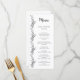 Menu folha única, tamanho: 10,16 x 22,86 cm, papel: Semi-brilho Básico