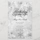 Design de "Programa de Festa de aniversário" elegante com flocos de neve brilhantes de inverno e luzes em Prata com texto personalizado.