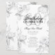 Design de "Programa de Festa de aniversário" elegante com Convênio Floral em Prata com texto personalizado.