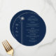 Mystical Blue Silver Sun Moon Stars Space Wedding Cards com carateres cardápios com estrelas prateadas simples em um fundo azul com seus detalhes cardápios no centro em um moderno roteiro de caligrafia prateada. Personalize editando o texto nas caixas de texto fornecidas. Concebido para si por ©Evco Studio em www.zazzle.com/store/evcostudio