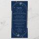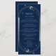 Mística Blue Silver Sun Moon Stars Space Wedding Cartões Menu Cartões de Casamento apresentam um sol prateado, lua e estrelas em um fundo azul com os detalhes do menu no centro em um roteiro moderno de caligrafia prateada. Personalize editando o texto nas caixas de texto fornecidas. Projetado para você pelo Evco Studio © em www.zazzle.com/store/evcostudio