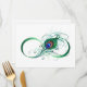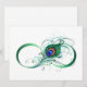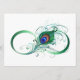 O símbolo do infinito com uma pena brilhante, verde, de pavão artístico sobre um fundo branco. Tatuagem.