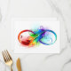 Símbolo infinito desenhado artificialmente com uma bela pena arco-íris sobre fundo branco. Tatuagem.