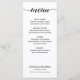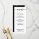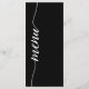 Simples Black and White Script Custom Meals Wedding Menu" (Menu de casamento de refeições personalizadas com script preto e branco) - um complemento clássico e elegante à sua recepção de casamento. Este menu apresenta um esquema de cores preto e branco eterno com tipografia do script na moda, permitindo personalizar as refeições de acordo com as suas preferências. Personalize o nome da noiva e do noivo, cursos de menu, data do casamento e mensagem especial. Elevem sua experiência de jantar de casamento com este sofisticado design de menu. Sua simplicidade e versatilidade tornam-no adequado para uma variedade de temas e estilos de casamento, enquanto as opções de refeições personalizáveis garantem que o paladar de cada convidado seja atendido. Ideal para casais que buscam um olhar refinado e polido para a decoração do casamento, este menu adiciona um toque de sofisticação às suas mesas de recepção. Imprima seus convidados com este menu elegante e personalizado que complementa perfeitamente seu dia especial.