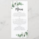 Menu de casamento simples e elegante do eucalipto mínimo moderno