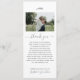 Um belo cardápio de casamento com o nome da noiva e do noivo, a data do casamento e os itens de menu personalizáveis acentuados com letras de mão e rosquinhas pintadas à mão. A parte de trás apresenta a sua fotografia e o seu espaço para adicionar uma nota personalizada - ou elimina facilmente a fotografia e a nota. Simples e elegante com um toque de chic rústico - coordena-se lindamente com tantos estilos de casamento de hoje.