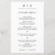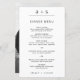 Menu moderno de casamento de fotos com um simples design com seu monograma, nomes e datas em uma fonte de sans preta, sobre um fundo branco. O verso tem sua foto favorita. Esses menus baratos de casamento são impressos em folhas de papel para uma opção econômica e são perfeitos para um casamento de estilo minimalista.